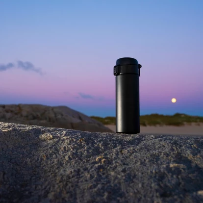 Dodatkowe informacjeUtrzymuje temperaturę powyżej 40°C przez 16 godzin. Szczelne zamknięcie typu leak proof. Dwie ścianki ze stali nierdzewnej, zarówno wewnątrz jak i na zewnątrz zastosowano stal nierdzewną 18/8 o podwyższonej jakości. Podstawa kubka z silikonu.